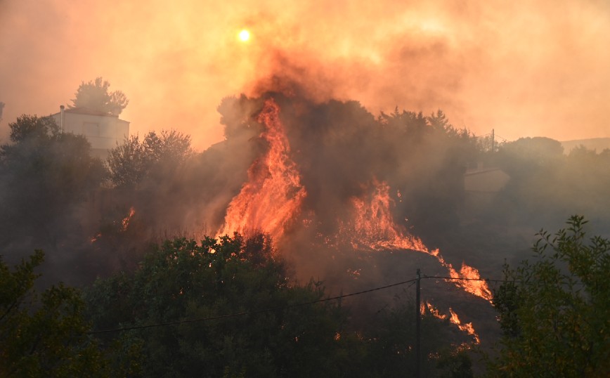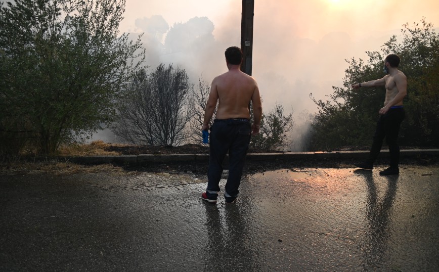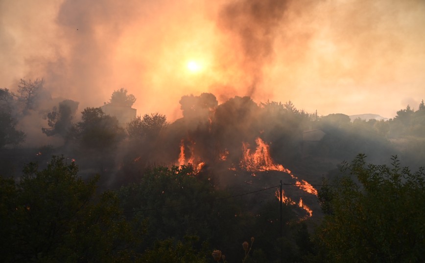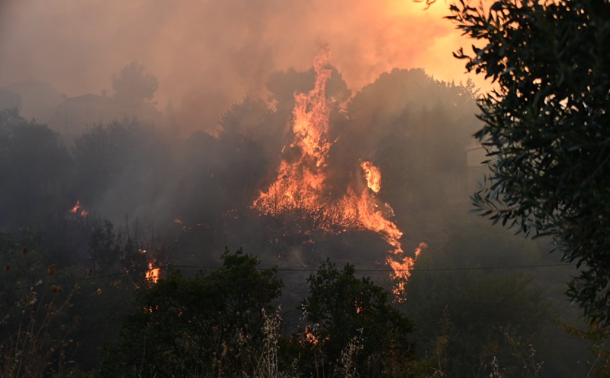 Μέσα στο Κρυονέρι μπήκαν οι φλόγες από τη φωτιά που ξέσπασε στη Βαρυμπόμπη, με την περιοχή να έχει εκκενωθεί.