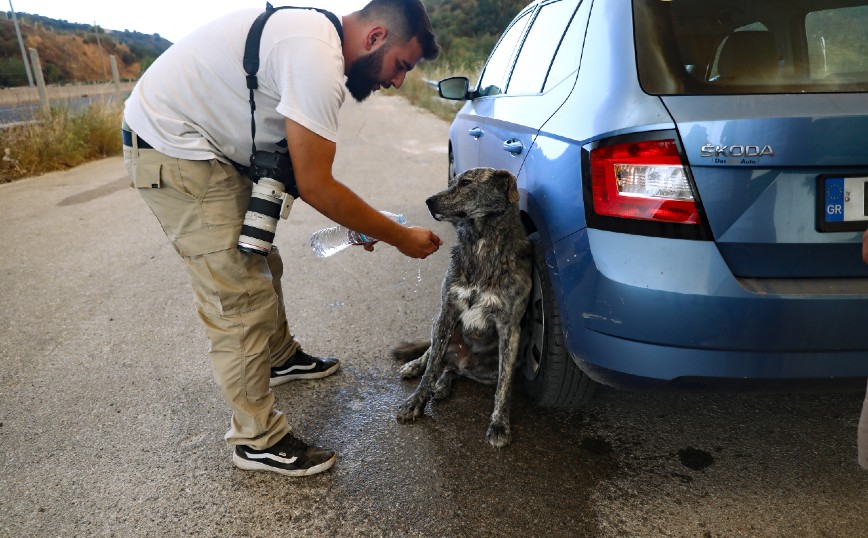 Ο φωτογραφικός φακός κατέγραψε την στιγμή που φωτορεπόρτερ ο οποίος βρίσκεται στην περιοχή των Αφιδνών σταμάτησε το ρεπορτάζ προκειμένου να φροντίσει ένα αδέσποτο σκυλάκι.
