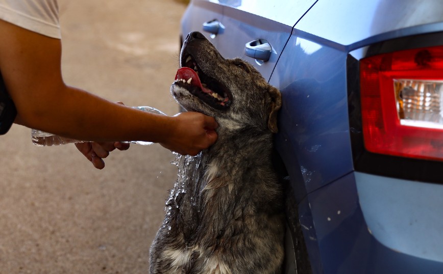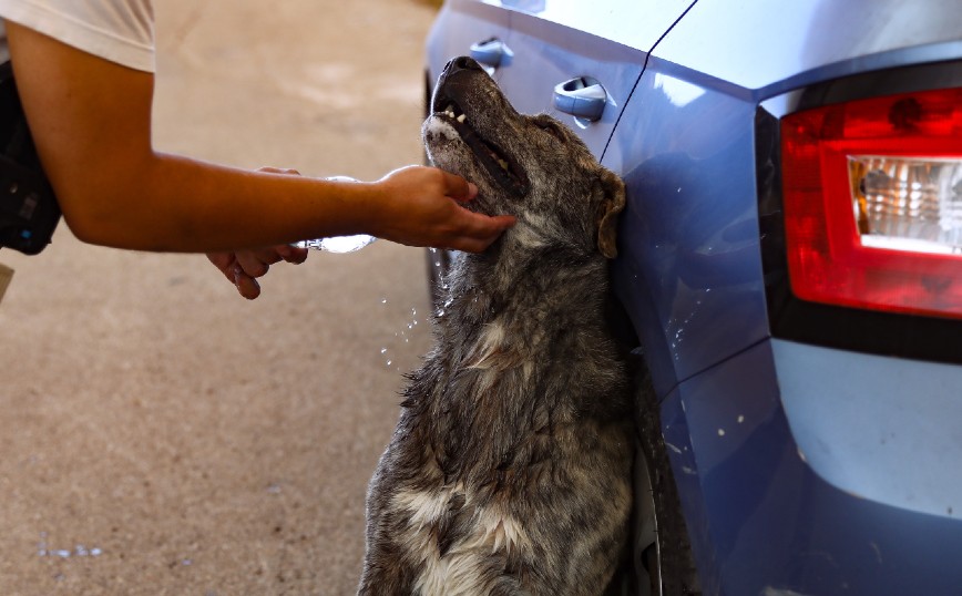 Το μικρό τετράποδο ζώο, είχε εντοπιστεί να πηγαίνει δεξιά και αριστερά σα χαμένο και τρομαγμένο. Ο φωτορεπόρτερ έσπευσε να το χαϊδέψει ώστε να το ηρεμήσει ενώ στην συνέχεια το δρόσισε βρέχοντας του το κεφάλι και το ξεδίψασε με νερό που είχε το μπουκάλι που είχε στα χέρια του.