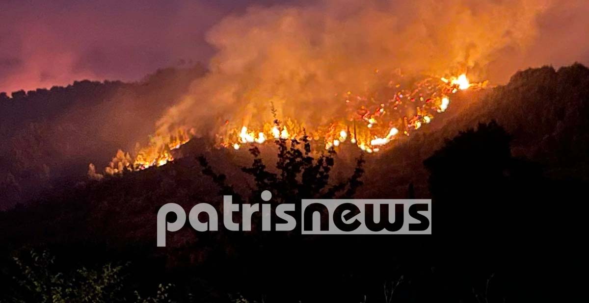 Μαίνεται η φωτιά στην Ηλεία, για δεύτερη νύχτα, με τις φλόγες να απειλούν, αυτή την ώρα, το χωριό Κολίρι.