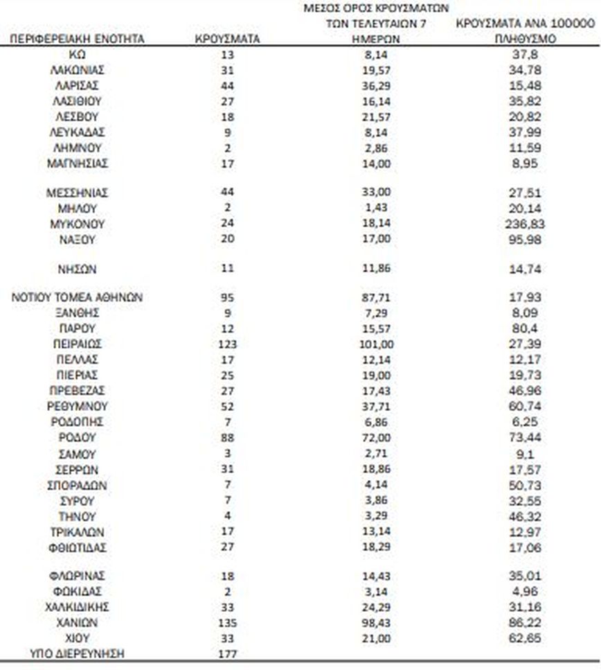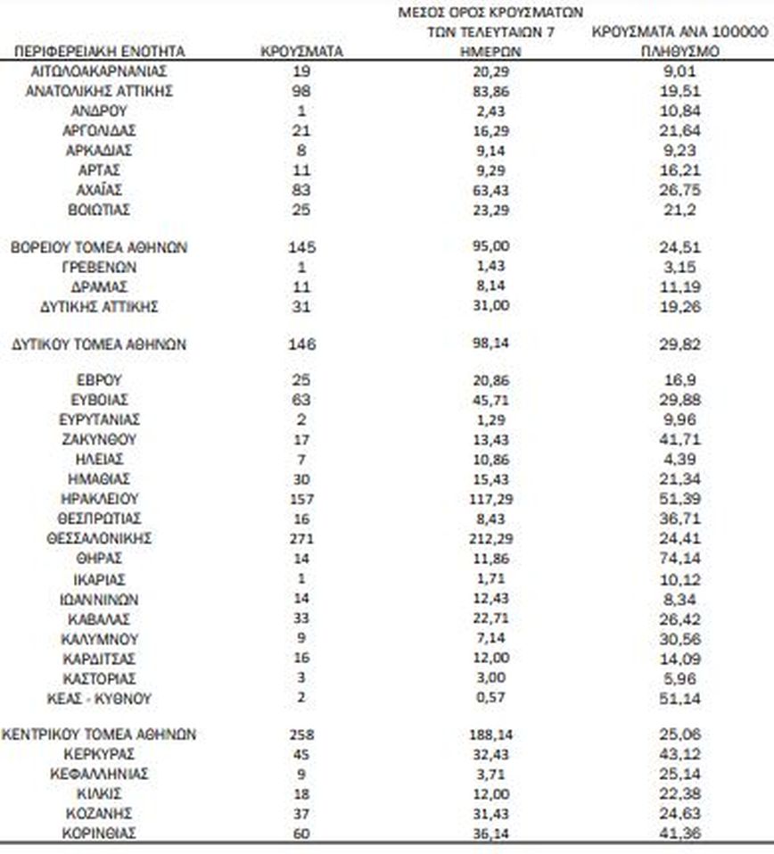 Αναλυτικότερα τα κρούσματα στις περιφερειακές ενότητες που ανήκουν στην Αττική:
