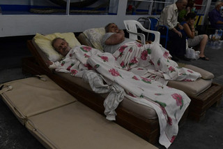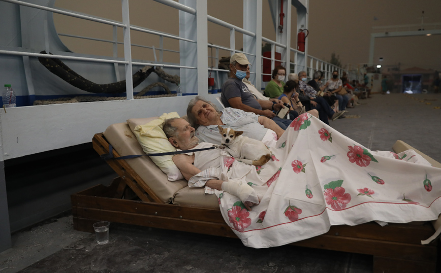 Οι φωτιές στην Ελλάδα κάνουν το γύρο του κόσμου. Το Associated Press αποτυπώνει ένα ηλικιωμένο ζευγάρι στο φέρι μποτ να είναι ξαπλωμένοι και εξουθενωμένοι.