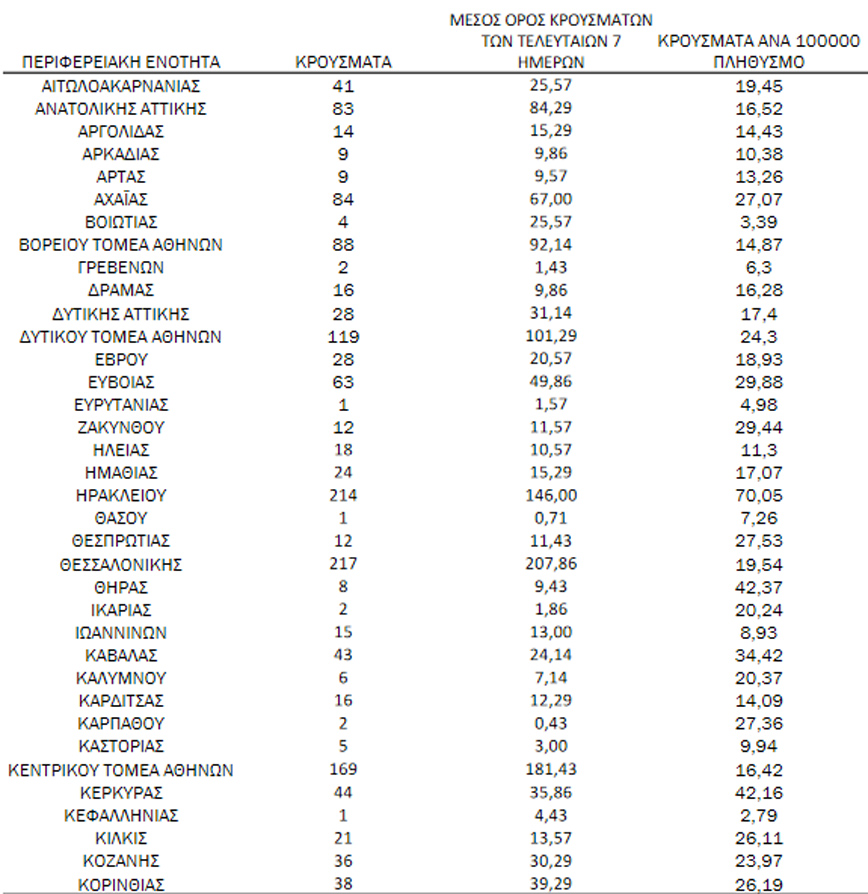 Συγκεκριμένα η Αττική έχει 657 νέα κρούσματα, ενώ η Κρήτη 440 (Ηράκλειο 214, Λασίθι 30, Ρέθυμνο 51, Χανιά 145). Παράλληλα η Θεσσαλονίκη κατέγραψε 217 νέα περιστατικά covid-19.