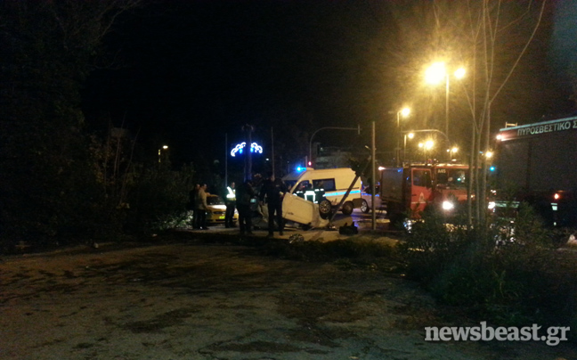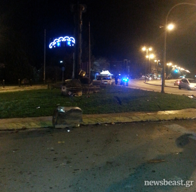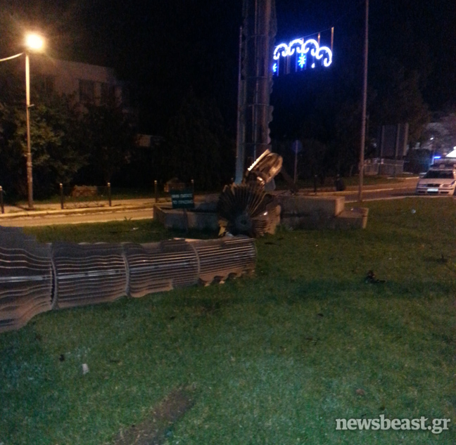 Είχε προηγηθεί πάντως η σύγκρουση του Smart με ένα άγαλμα που βρίσκεται στο σημείο, στο οποίο προκάλεσε σοβαρές φθορές, αλλά και με το φανάρι.