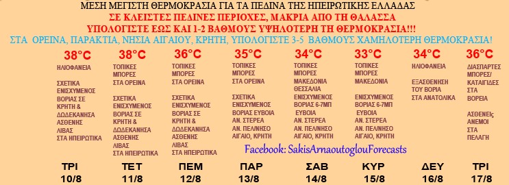 Στην εξέλιξη του καιρού από αύριο, Τρίτη 10 Αυγούστου, μέχρι και τις 17 του μηνός αναφέρεται μέσω ανάρτησής του ο Σάκης Αρναούτογλου, δίνοντας, έτσι, και μία πρώτη εκτίμηση για τον καιρό του Δεκαπενταύγουστου.