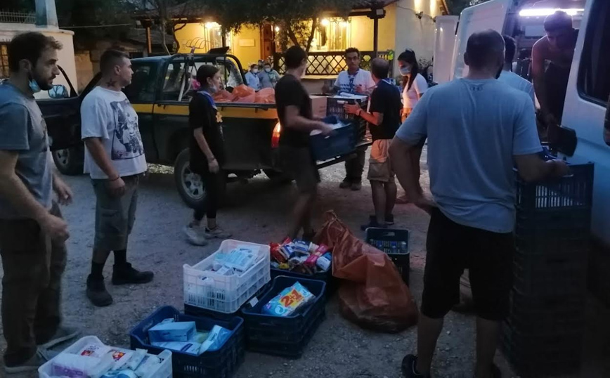 Οι προσκοπικές εστίες στον Διόνυσο, την Κηφισιά και τη Νέα Ερυθραία μετατράπηκαν σε κυψέλες εθελοντικής προσφοράς που σύντομα αγκαλιάστηκαν από τους όμορους δήμους, την κοινωνία των πολιτών και εκατοντάδες συμπολίτες. Εκεί συλλέχθηκαν νερό και τρόφιμα μακράς διάρκειας που παραδόθηκαν στη Βαρυμπόμπη, την Ηλεία και τη Χαλκίδα.