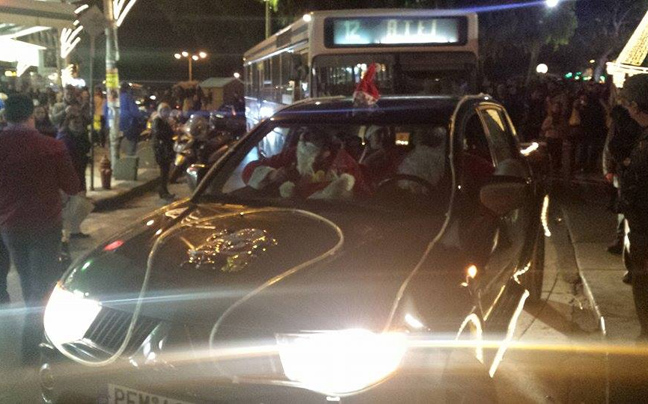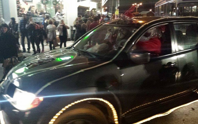 Ο συγκεκριμένος Άγιος Βασίλης, γράφει το ekriti.gr, έφτασε νωρίτερα γιατί έχει δυνατό όχημα: διαθέτει ένα επιβλητικό 4Χ4 με το οποίο εμφανίστηκε μαζί με τη παρέα του, στην πλατεία Ελευθερίας στο Ηράκλειο Κρήτης.