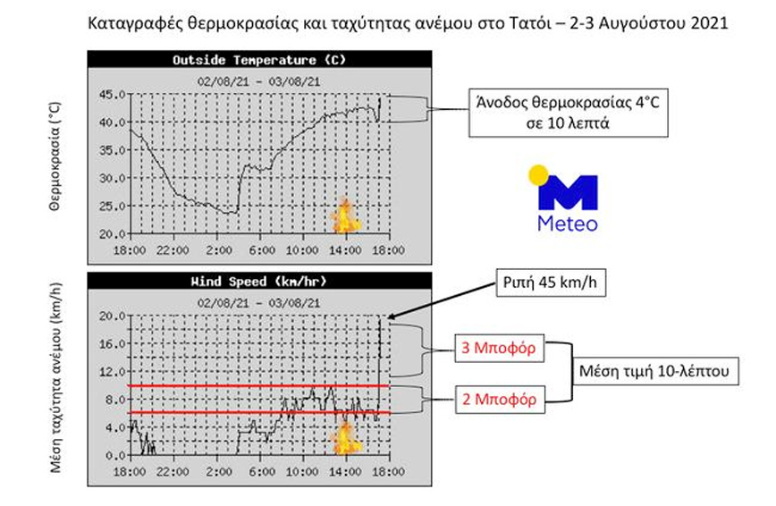 Τις καιρικές συνθήκες που επικρατούσαν στο Τατόι στις 2 και 3 Αυγούστου, αλλά και την ένταση των ανέμων όταν ξέσπασε και εξαπλώθηκε η μεγάλη φωτιά στην περιοχή, παρουσιάζει το Εθνικό Αστεροσκοπείο Αθηνών.