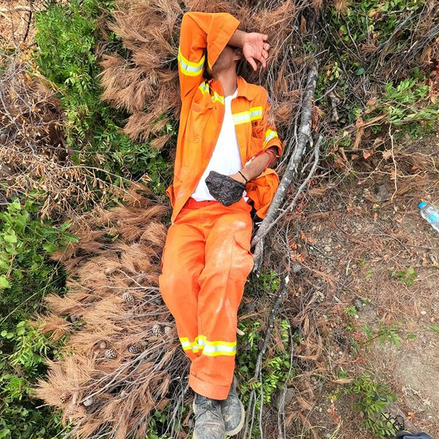 «Οι φωτιές αντιμετωπίστηκαν εξ ολοκλήρου από τους εθελοντές. Οι ντόπιοι έφτιαξαν μόνοι τους αντιπυρικές ζώνες για να προστατεύσουν το χωριό στο επάνω μέρος του που ερχόταν το κύμα της φωτιάς» σημειώνει.
