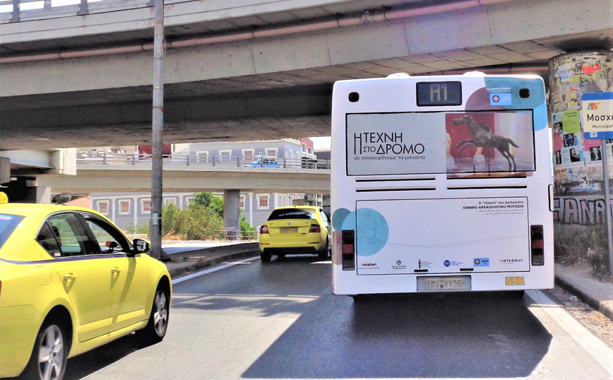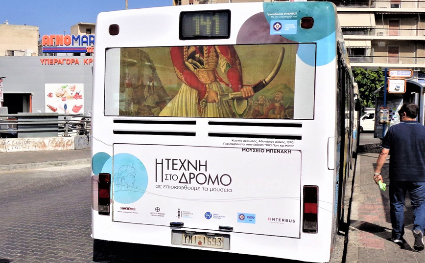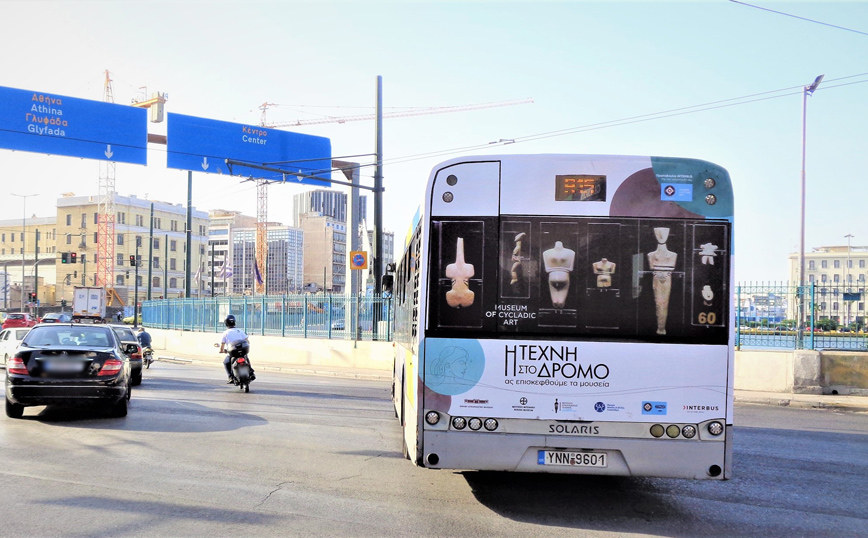 Στο πλαίσιο της καμπάνιας, ART ON THE ROAD, οι πίσω όψεις 30 αστικών λεωφορείων που διασχίζουν τις κεντρικές οδικές αρτηρίες του λεκανοπεδίου μεταφέροντας καθημερινά χιλιάδες επιβάτες, μετατράπηκαν σε ζωντανούς καμβάδες για να φιλοξενήσουν μοναδικά αρχαιολογικά ευρήματα και εξαίσια εικαστικά έργα.