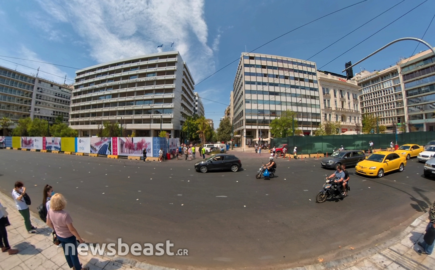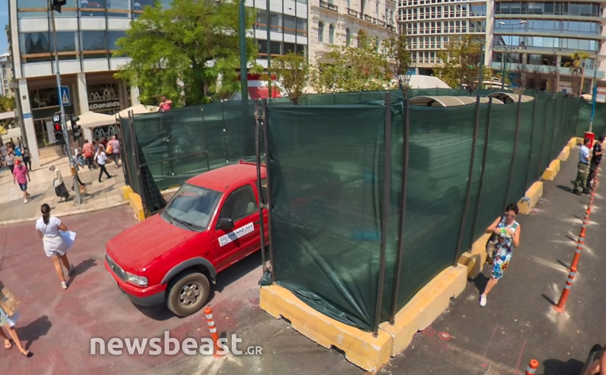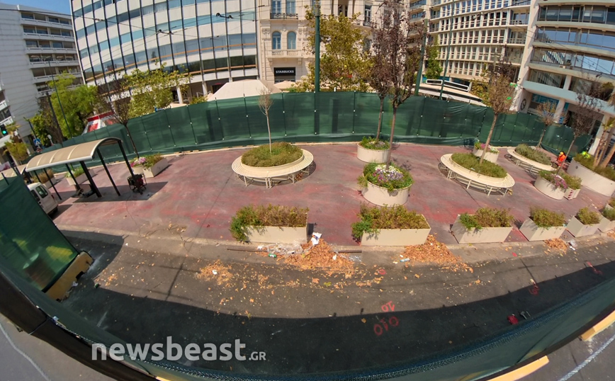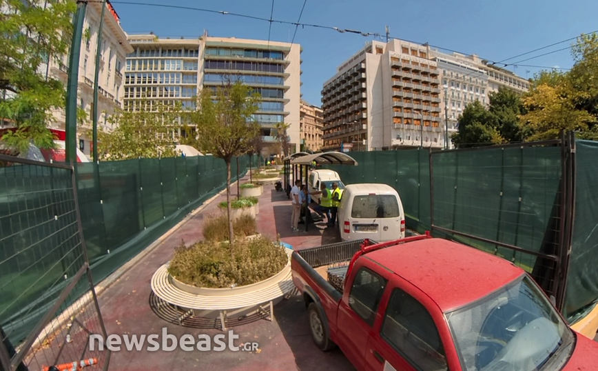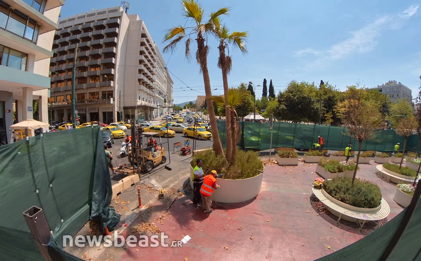 Εικόνες από τα έργα ανάπλασης της κάτω πλατείας Συντάγματος της Αθήνας, που αφορούν το δημόσιο χώρο τον οποίο οριοθετούν οι οδοί Φιλελλήνων, Καραγιώργη Σερβίας και Μητροπόλεως, κατέγραψε την Πέμπτη (12/8) η κάμερα του Newsbeast.