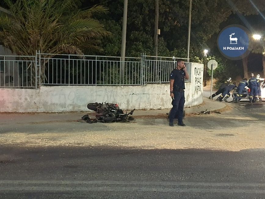 Σφοδρή μετωπική σύγκρουση σημειώθηκε χθες το βράδυ στη Ρόδο, στο 3ο χιλιόμετρο της επαρχιακής οδού Ρόδου Καλλιθέας, μεταξύ μηχανής μεγάλου κυβισμού και αυτοκινήτου, με τραγικό απολογισμό έναν νεκρό και τέσσερις τραυματίες, ο ένας σοβαρά.