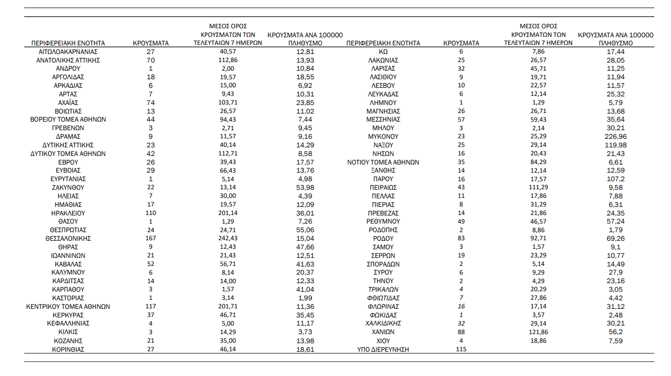 Αναλυτικά ο «χάρτης» των κρουσμάτων