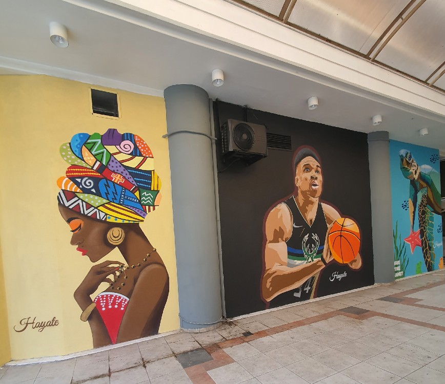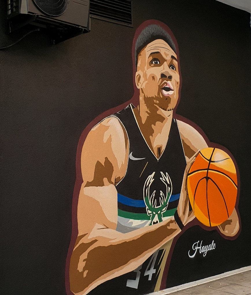 Στην αποτύπωση της μορφής του Βασίλη Χατζηπαναγή στον τοίχο του Κατσάνειου τον δυσκόλεψε το βλέμμα του θρύλου των γηπέδων, ενώ η φωτογραφία με το γκράφιτι που έκανε με τον «θεό του ποδοσφαίρου» Ντιέγκο Μαραντόνα, σε σχολείο της Καλαμαριάς, «ταξίδεψε» σε όλο τον κόσμο μέσα από τα social media. Αυτή τη φορά, ο street artist Ηλίας Στύλος (aka «Hayate») έκανε όλα τα βλέμματα να γυρίζουν καθώς ζωγράφιζε, τα τελευταία 24ωρα, τη μορφή του Γιάννη Αντετοκούνμπο σε τοίχο στην ανατολική Θεσσαλονίκη.