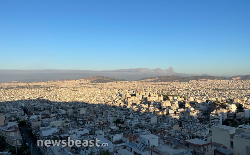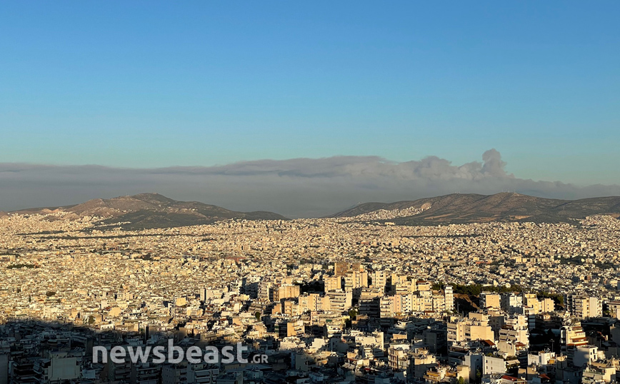 Ολονύχτια μάχη έδιναν οι πυροσβεστικές δυνάμεις με τις φλόγες στα Βίλια Αττικής. Ο φωτογραφικός φακός του Newsbeast κατέγραψε σήμερα το πρωί την εικόνα στον ουρανό από τον λόφο στο Γαλάτσι και αυτό που αντικρίζει κανείς στις φωτογραφίες είναι ένα πυκνό, μαύρο σύννεφο καπνού να κυριαρχεί στο βάθος της εικόνας.