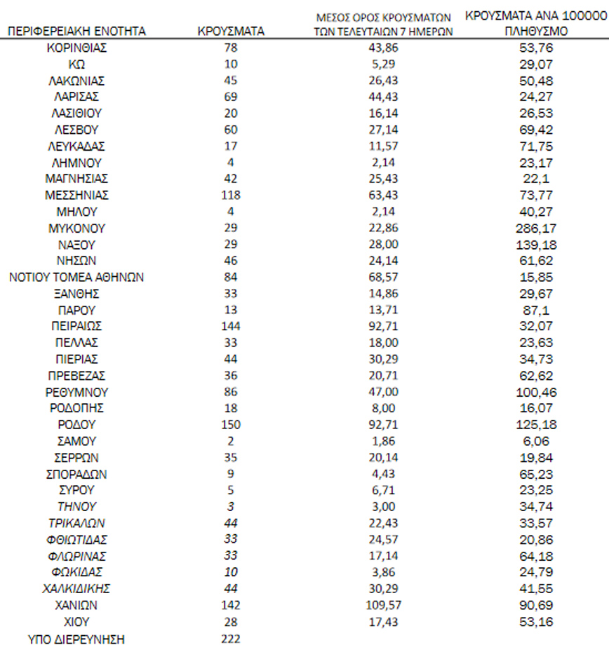 - 222 κρούσματα υπό διερεύνηση