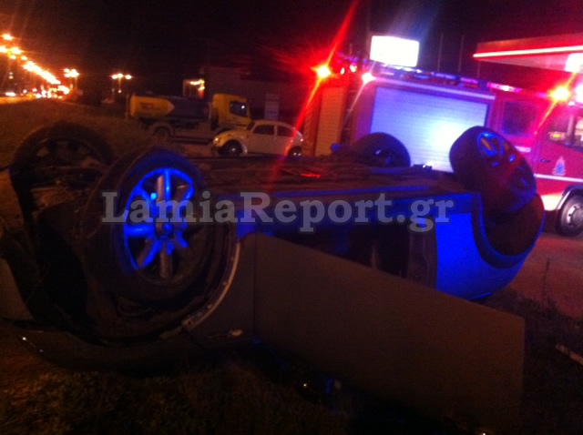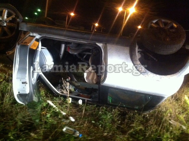 Τύχη-βουνό είχαν δύο νεαροί οι οποίοι επέβαιναν σε αυτοκίνητο το οποίο αναποδογύρισε μετά από ατύχημα, στο 1ο χλμ της Λαμίας – Αθηνών.