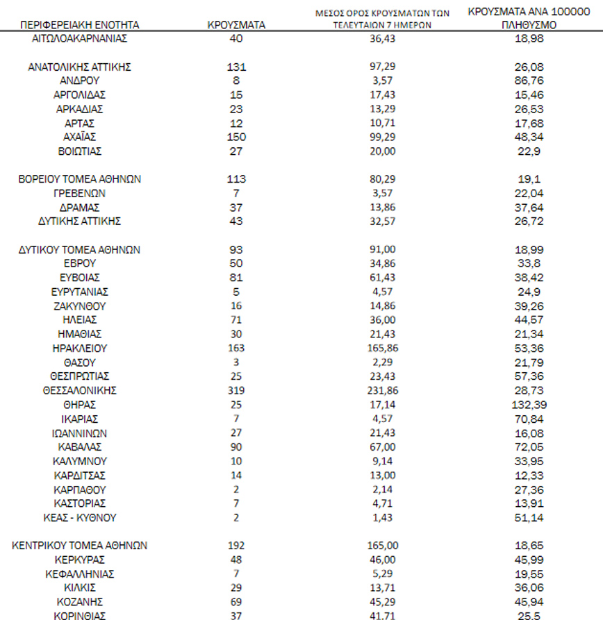 - 27 κρούσματα στην Π.Ε. Βοιωτίας