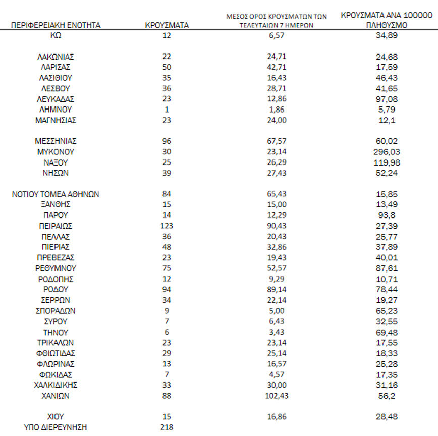 - 218 κρούσματα υπό διερεύνηση