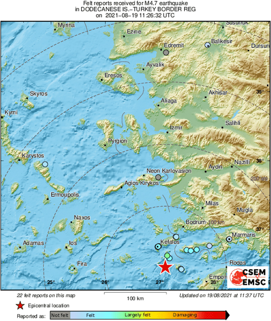Το Γεωδυναμικό Ινστιτούτο υπολογίζει τον νέο σεισμό στα 4,7 Ρίχτερ, ενώ την ίδια εκτίμηση κάνει και το Ευρωμεσογειακό Ινστιτούτο.