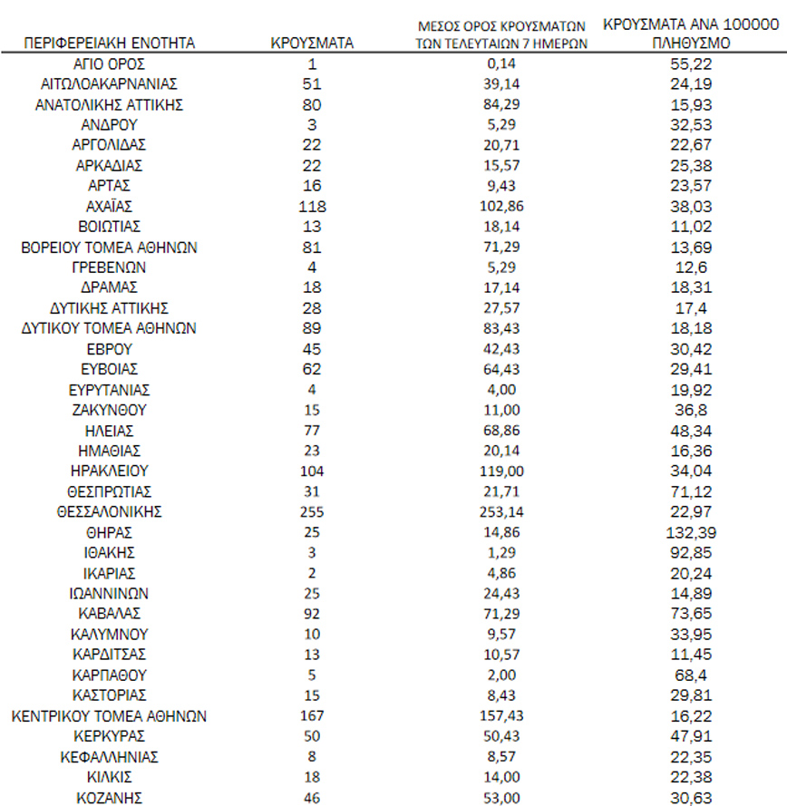 - 24 κρούσματα στην Π.Ε. Φθιώτιδας