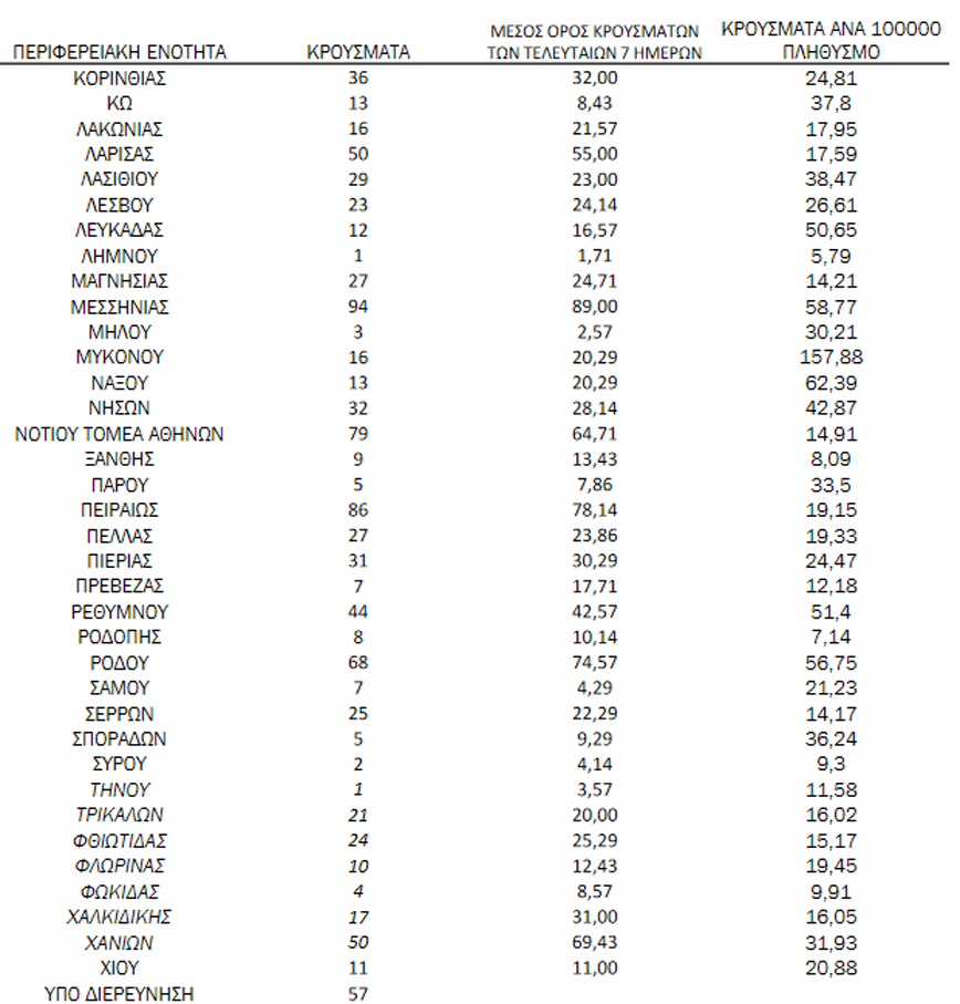 - 51 κρούσματα στην Π.Ε. Αιτωλοακαρνανίας