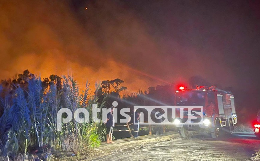 Μάχη για την κατάσβεση φωτιάς που ξέσπασε σε περιοχή με καλάμια στη Μούτελη στον Πύργο Ηλείας δίνουν πυροσβεστικές δυνάμεις.
