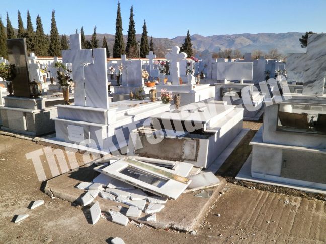 Ζημιές προκλήθηκαν σε δεκάδες τάφους του κοιμητηρίου, το οποίο βρίσκεται στην ανατολική είσοδο της πόλης και είναι αρκετά εκτεθειμένο στον άνεμο.