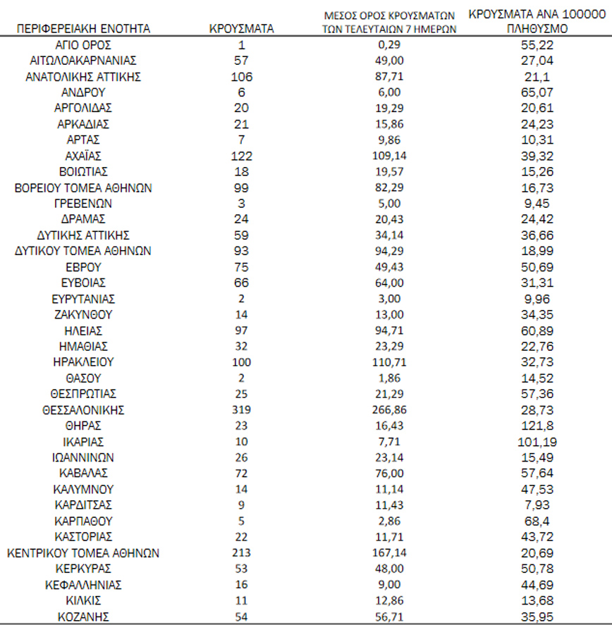 - 57 κρούσματα στην Π.Ε. Αιτωλοακαρνανίας