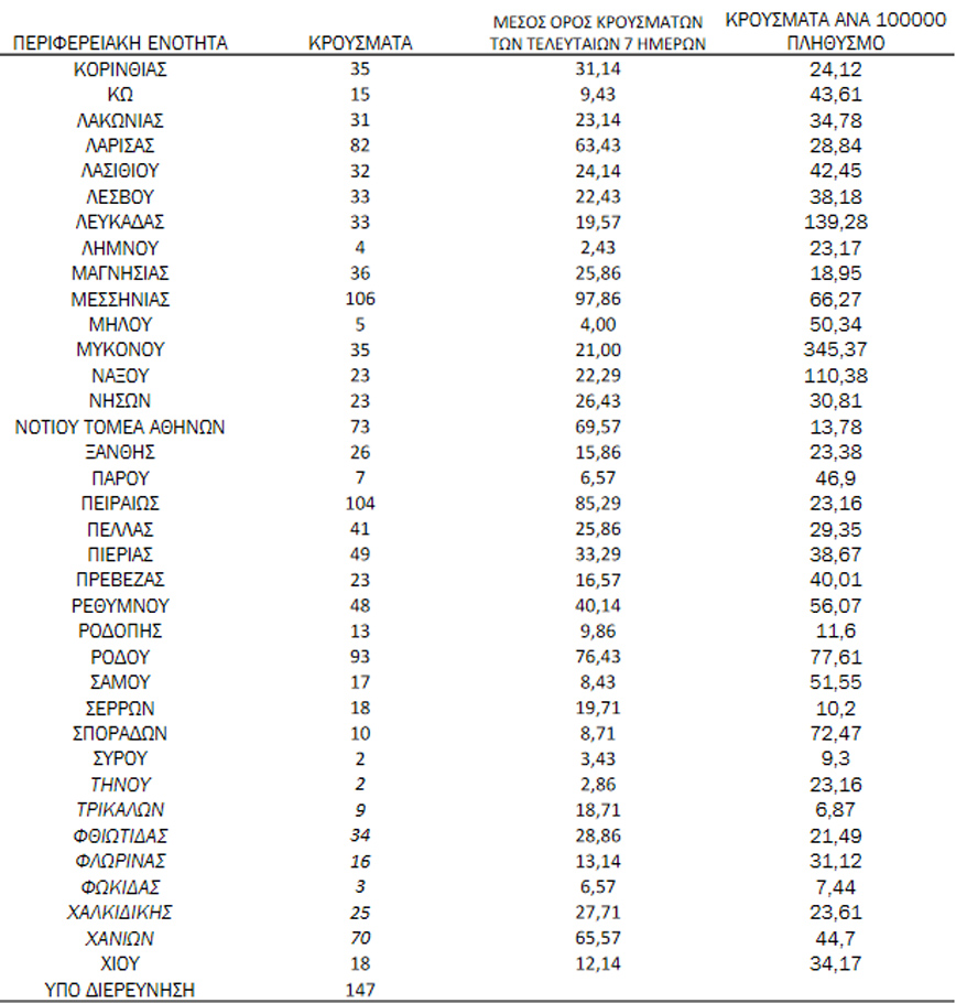 - 20 κρούσματα στην Π.Ε. Αργολίδας