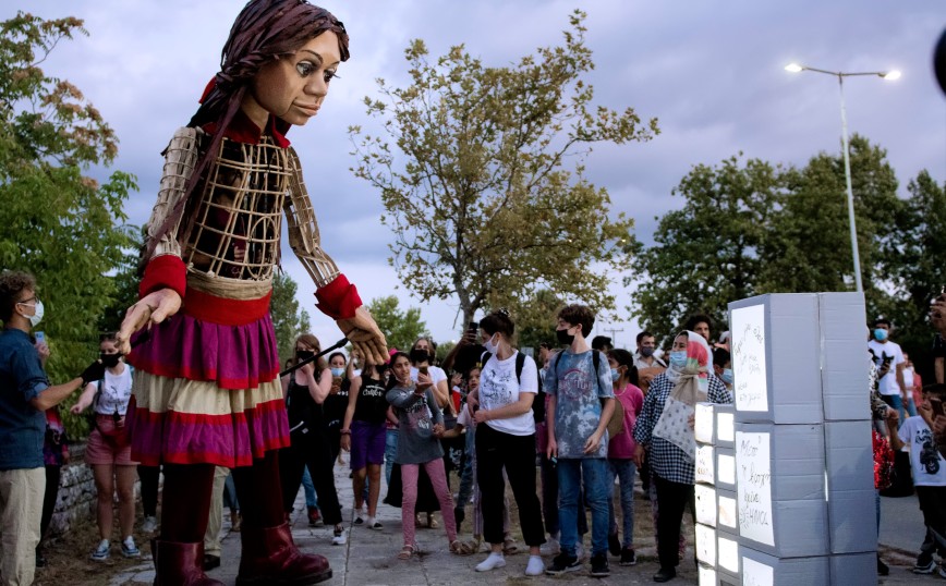 Η Μικρή Αμάλ, που στην γλώσσα της η λέξη σημαίνει «ελπίδα», είναι στην πραγματικότητα, μία μεγάλη μαριονέτα με ύψος 3,5 μέτρα, η οποία αντιπροσωπεύει εκατομμύρια παιδιά-πρόσφυγες, πολλά από αυτά χωρισμένα από τις οικογένειές τους, μεταδίδει το ΑΠΕ-ΜΠΕ.