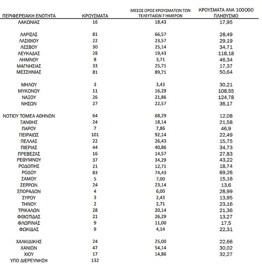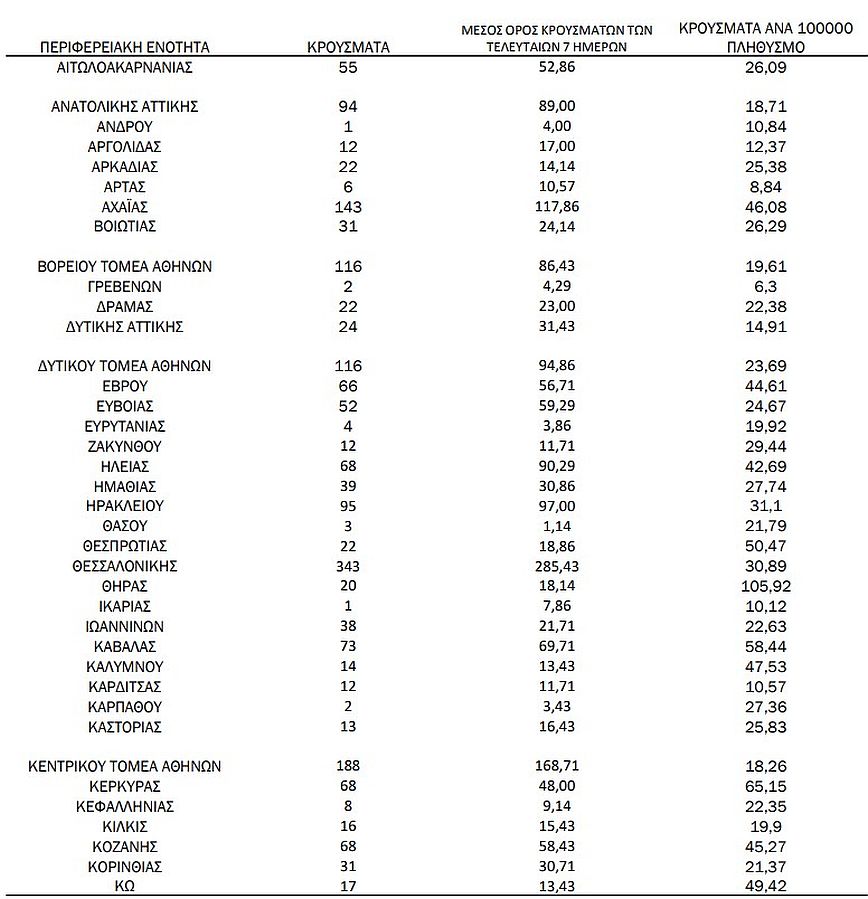 Αναλυτικά ο «χάρτης» των κρουσμάτων