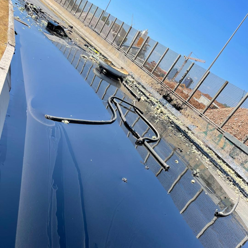 Ταυτόχρονα το επικίνδυνο υλικό θα απομακρυνθεί και από τα φρεάτια ομβρίων υδάτων για να αποκατασταθεί το σύστημα αντιπλημμυρικής προστασίας του οδικού δικτύου, ενώ θα καταβληθεί κάθε δυνατή προσπάθεια έτσι ώστε το υλικό να μην επεκταθεί περαιτέρω».