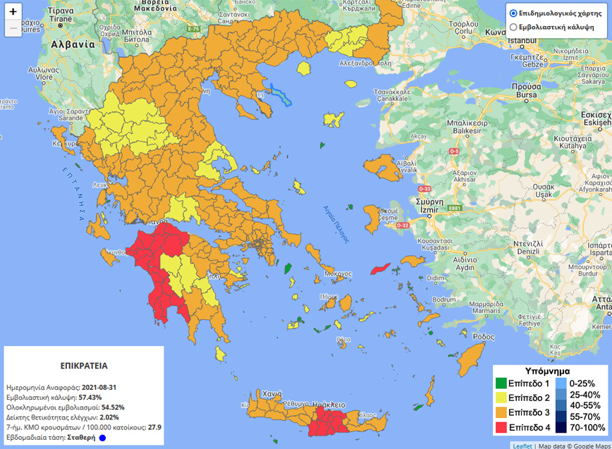 Πιο κοντά στην επιβολή τοπικού lockdown είναι η Αχαΐα και η Ηλεία, οι οποίες βρίσκονται στο «κόκκινο» (επίπεδο 4) του επιδημιολογικού χάρτη της χώρας, σύμφωνα και με την εισήγηση των επιδημιολόγων, υποεπιτροπή των οποίων συνεδρίασε χθες, Τρίτη, όπως πληροφορείται το Νewsbeast, με αντικείμενο την εβδομαδιαία επισκόπηση της πορείας της πανδημίας στην επικράτεια.