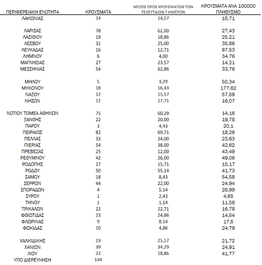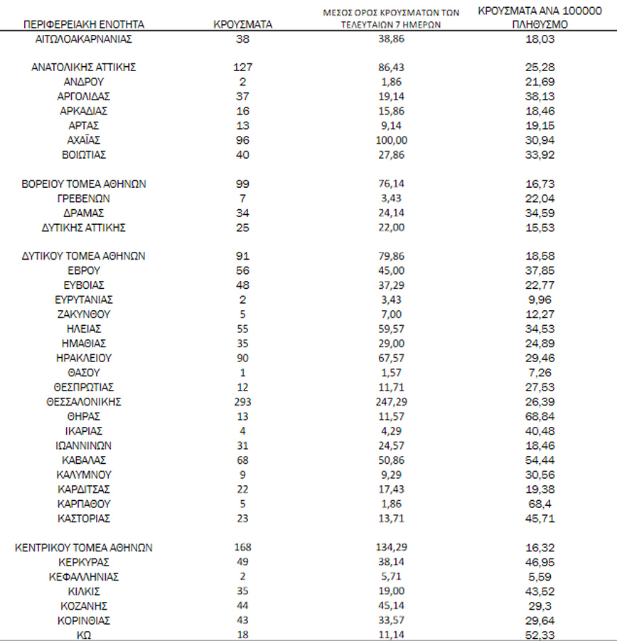 Συγκεκριμένα η Αττική έχει 679 νέα κρούσματα κορονοϊού, ενώ η Θεσσαλονίκη 293.