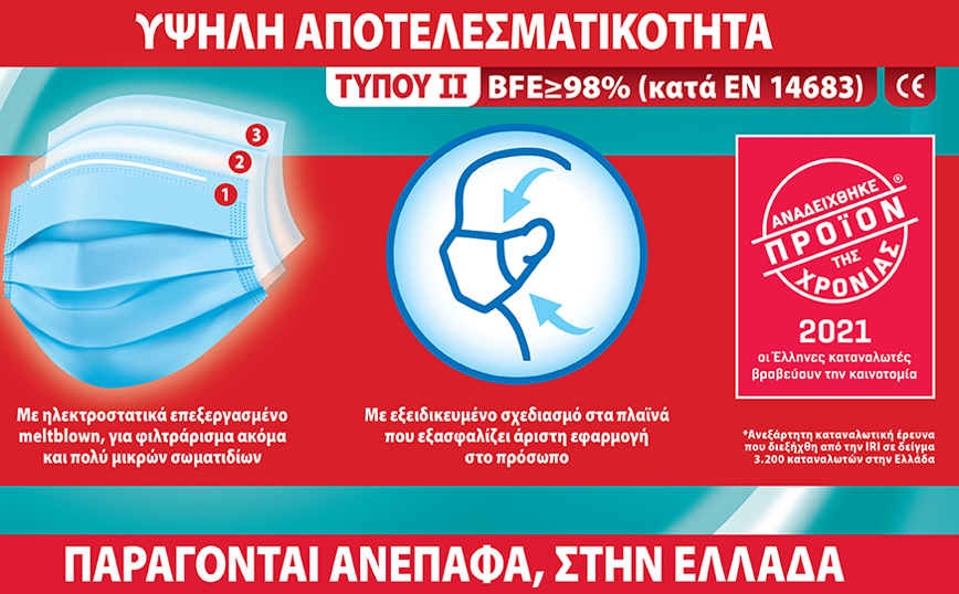 Πέραν του εμβολίου, σημαντικός αποτρεπτικός παράγοντας στη μετάδοση της COVID-19 είναι η εφαρμογή μέτρων ατομικής προστασίας και η χρήση μάσκας, η οποία είναι σημαντικότερο από ποτέ να εξασφαλίζει αποδεδειγμένη προστασία υψηλών επιδόσεων!