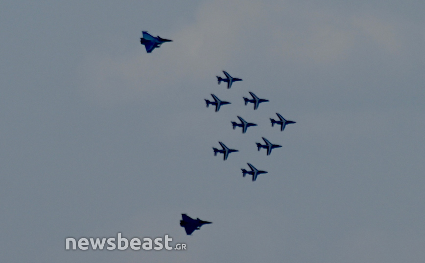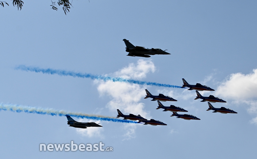 Ειδικότερα, δύο γαλλικά μαχητικά Rafale και το ακροβατικό σμήνος της γαλλικής Αεροπορίας «Patrouille de France» πέταξαν πάνω από την Αθήνα, για να αποχαιρετήσουν την Ελλάδα μετά τη συμμετοχή τους στην Athens Flying Week, η οποία διεξήχθη στην 114 Πτέρυγα Μάχης στην αεροπορική βάση Τανάγρα το Σαββατοκύριακο 4 και 5 Σεπτεμβρίου.