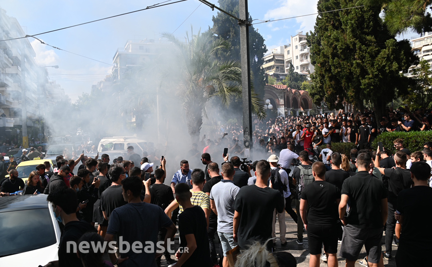 Κοσμοπλημμύρα παρατηρείται αυτήν την ώρα στον Ιερό Ναό Κοιμήσεως Θεοτόκου. Πλήθος κόσμου έχει συγκεντρωθεί στην εκκλησία για να πει τον τελευταίο «αντίο» στον τράπερ που έχασε την ζωή του σε τροχαίο δυστύχημα στην παραλιακή την περασμένη εβδομάδα.