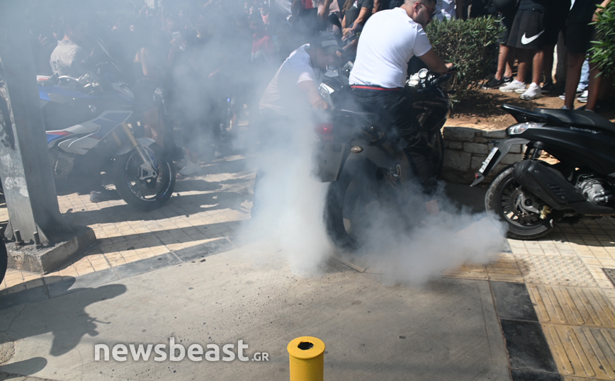 Οι φίλοι και οι θαυμαστές του, έβαλαν μπρος τις μηχανές τους και άρχισαν τα σπινιαρίσματα ενώ το γκάζι όλο και αυξανόταν με αποτέλεσμα ο ήχος να κεντρίσει το ενδιαφέρον και όσων βρισκόντουσαν και λίγο πιο μακριά και δεν μπορούσαν να δουν τι συμβαίνει.