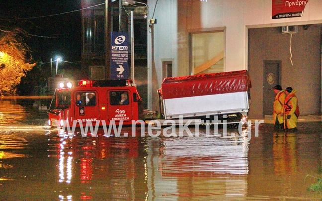 Η καταρρακτώδης βροχή στην ευρύτερη περιοχή του Ηρακλείου, έχει προκαλέσει έντονα προβλήματα απο την υπερχείλιση χειμάρρων.