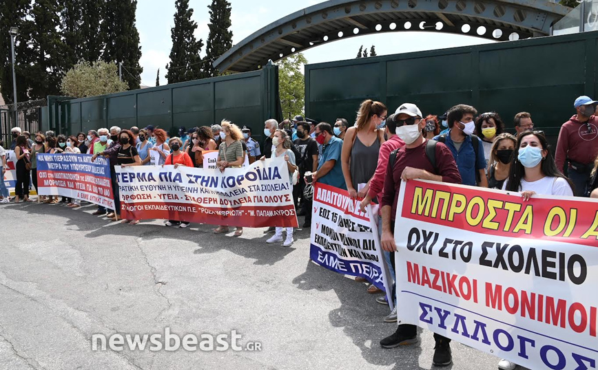 Μαθητές, φοιτητές, γονείς και εκπαιδευτικοί πραγματοποιούν αυτή την ώρα συγκέντρωσης διαμαρτυρίας έξω από το υπουργείο Παιδείας.