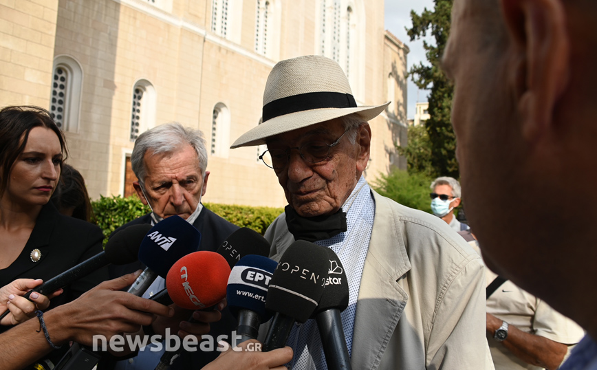 Βασίλης Βασιλικός και Κώστας Γαβράς βρέθηκαν σήμερα στη Μητρόπολη για να αποχαιρετίσουν τον σπουδαίο Μίκη Θεοδωράκη, λίγο προτού οδηγηθεί στην τελευταία του κατοικία στον Γαλατά Χανίων, όπως άλλωστε το επιθυμούσε ο ίδιος.