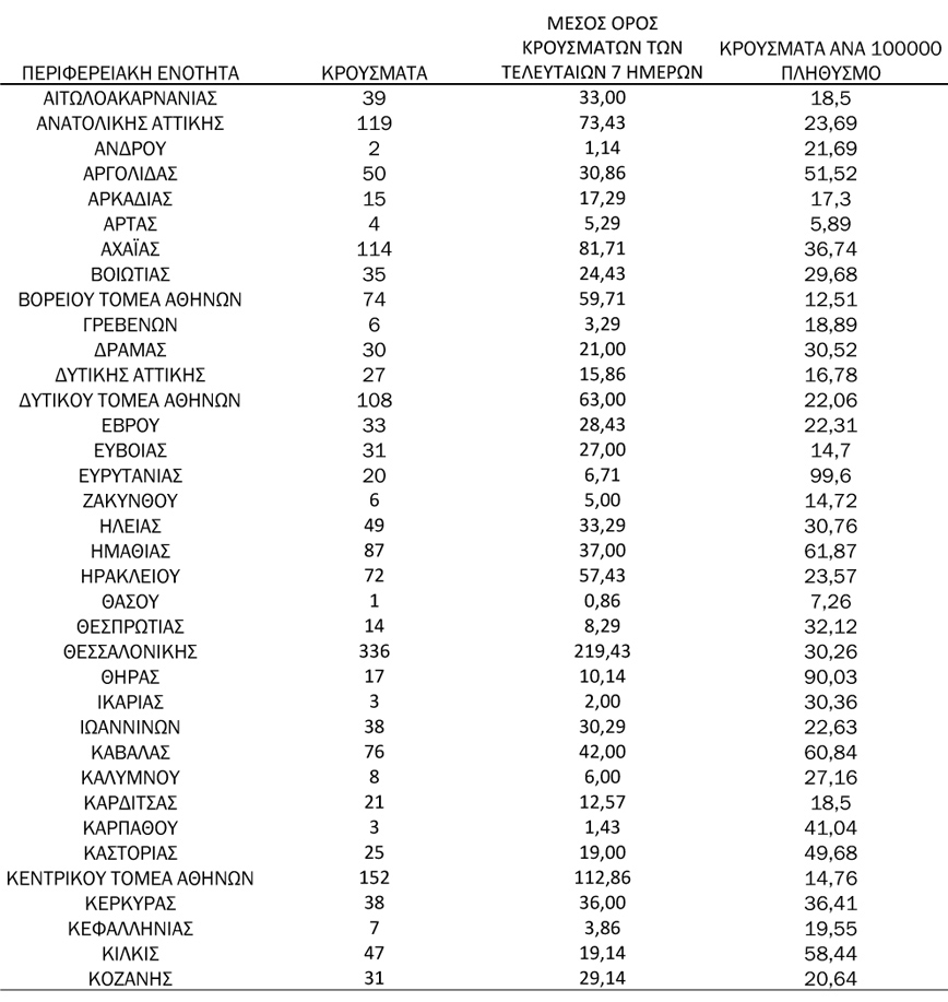 Συγκεκριμένα η Αττική έχει 635 νέα κρούσματα κορονοϊού, η Θεσσαλονίκη 336 και η Αχαΐα με 114.