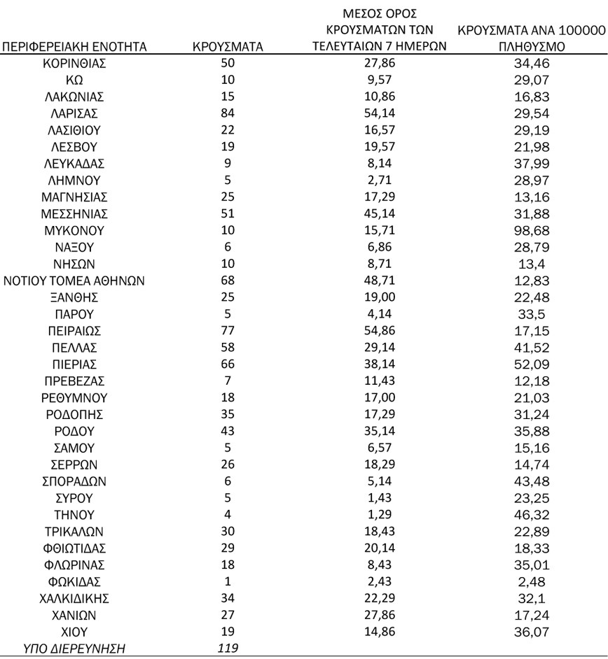 O ΕΟΔΥ ανακοίνωσε σήμερα (7/9) 2.807 νέα κρούσματα κορονοϊού, με τα περισσότερα να καταγράφονται σε Αττική και Θεσσαλονίκη.
