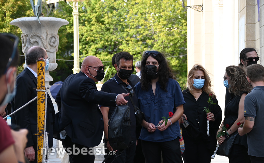 Ανάμεσα σε όσους θέλουν να του πουν ένα αντίο και ο εγγονός του Άγγελος, ο οποίος έφτασε στη Μητρόπολη με ένα κόκκινο τριαντάφυλλο στο χέρι. O εγγονός του Μίκη Θεοδωράκη και μικρός γιος της Μαργαρίτας, Άγγελος Θεοδωράκης Παπαγγελίδης, είχε αναφερθεί πρόσφατα στο ζήτημα που είχε προκύψει με την ταφή του μουσικοσυνθέτη με ανάρτησή του στο Facebook, γράφοντας χαρακτηριστικά: «Παππού μου μην ανησυχείς, η Κρήτη μας σε περιμένει, με όλοι την αγαπημένη σου οικογένεια θα είσαι εκεί».