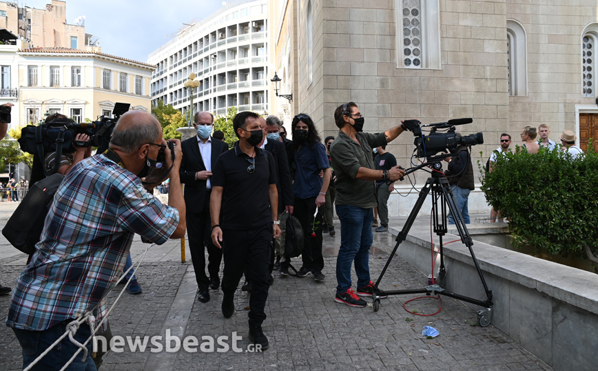 Στη Μητρόπολη βρέθηκε και ο τραγουδιστής Δημήτρης Μπάσης, ο οποίος σε δηλώσεις του σε δημοσιογράφους ανέφερε: «Θρηνούμε την απώλεια ενός σπουδαίου ανθρώπου, ενός παγκόσμιου συμβόλου. Είμαστε πολύ στεναχωρημένοι γιατί είναι το τέλος μιας εποχής. Κάποιοι άνθρωποι ευτυχήσαμε να τον γνωρίσουμε από κοντά, να τραγουδάμε τα τραγούδια του. Αυτό λίγο εμένα μου απαλύνει τις τελευταίες ώρες τον πόνο, ότι μπόρεσα να τον γνωρίσω, ότι ήμουν πολύ κοντά του. Ο κόσμος αποτίει φόρο τιμής σε έναν σπουδαίο άνθρωπο».