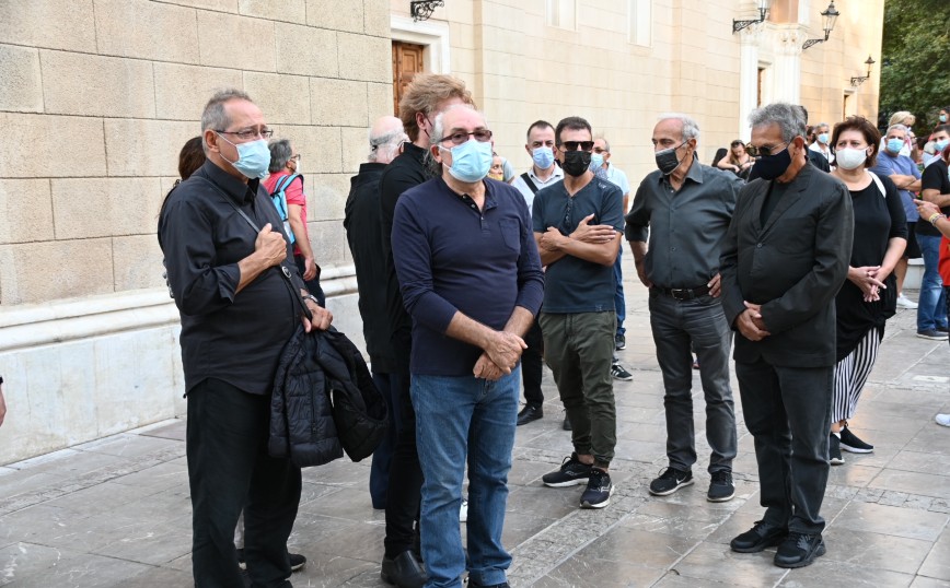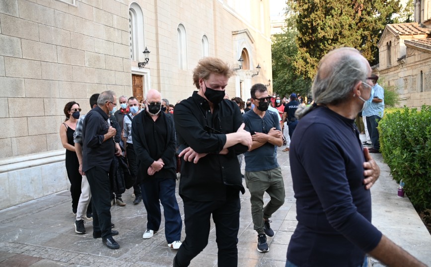 Με έκδηλη τη συγκίνηση στα πρόσωπά τους οι τραγουδιστές μαζί με πλήθος κόσμου που βρισκόταν στο σημείο είπαν το τελευταίο αντίο στον μεγάλο συνθέτη.