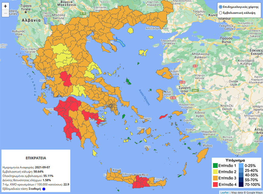 Στο «κόκκινο» όμως πέρασε και η Αργολίδα με τον δείκτη θετικότητας να φτάνει το 2,67% και τον κινητό μέσο όρο κρουσμάτων τα 31,9 ανά 100.000 κατοίκους εβδομαδιαίως.