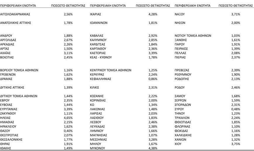 Δείτε, αναλυτικά, τη θετικότητα σε όλη τη χώρα: