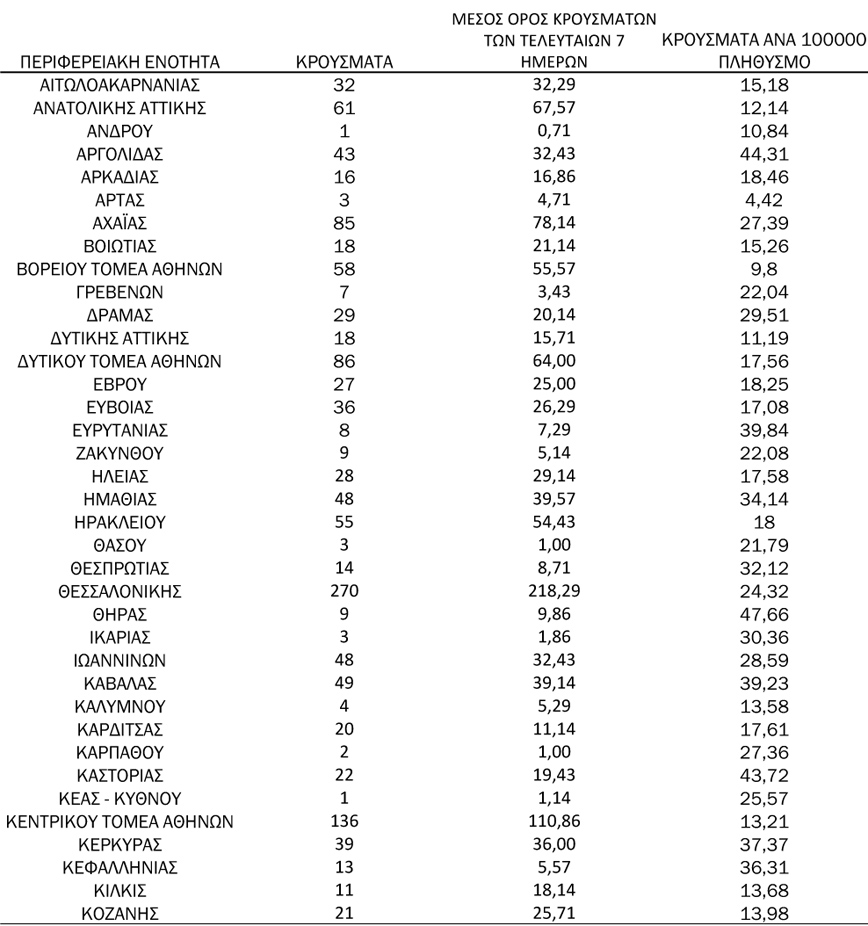 - 32 κρούσματα στην Π.Ε. Αιτωλοακαρνανίας
